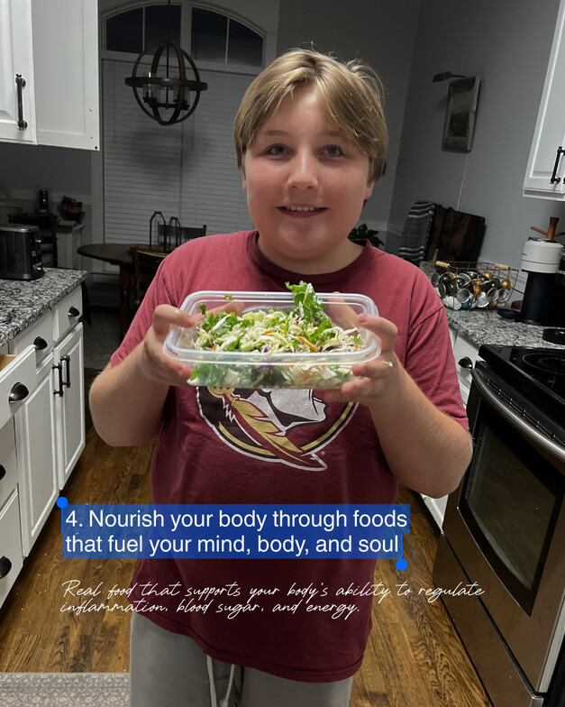 Not restrictive diets. Real food that supports your body's ability to regulate inflammation, blood sugar, and energy. Food as fuel, not punishment or reward.