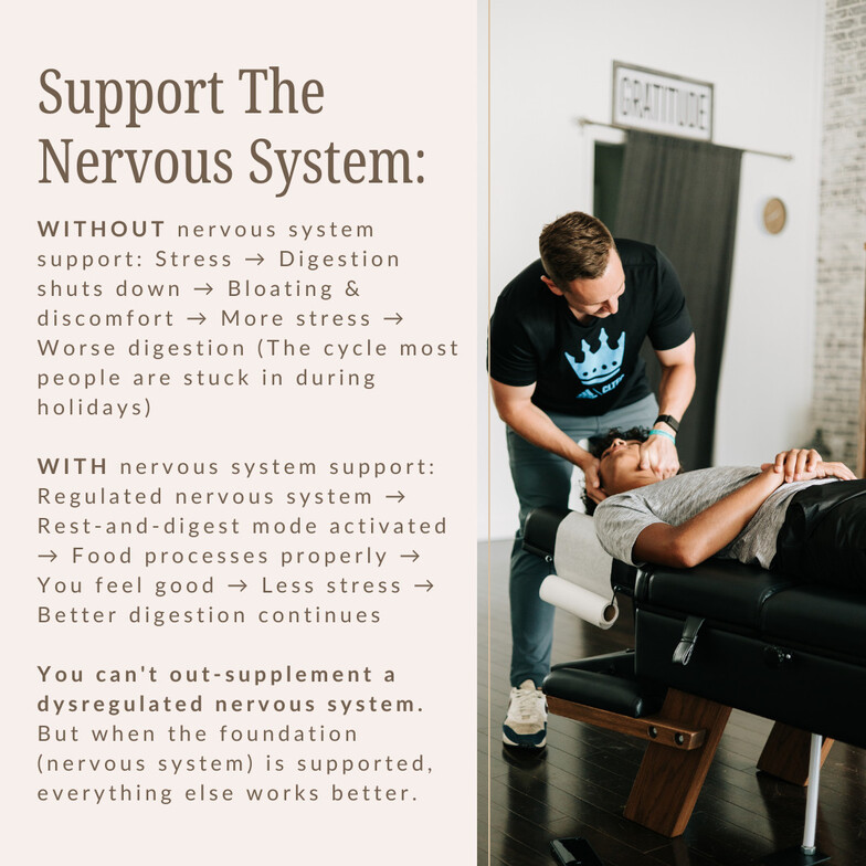 When you support your nervous system FIRST - through chiropractic care, breathwork, movement, and rest - your digestion works better.