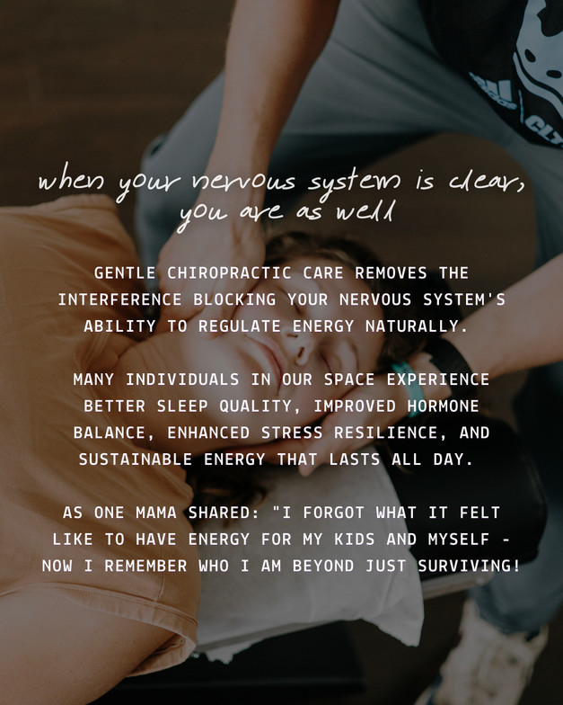 Your exhaustion is your body's way of asking for help. When we support your nervous system through gentle chiropractic care, many people rediscover energy they forgot they had!